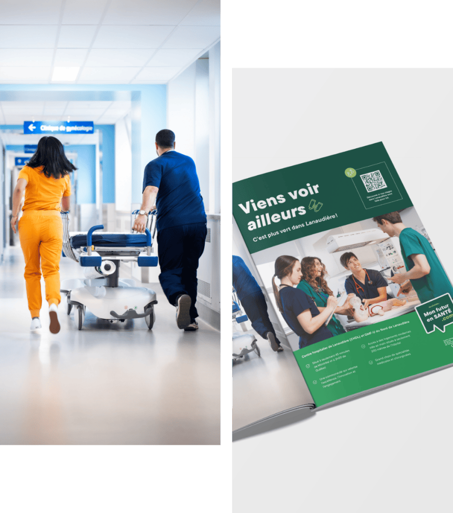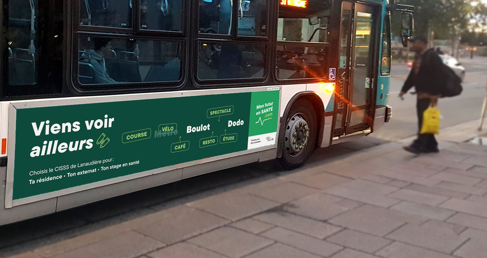 Pour attirer les futurs médecins dans la région de Lanaudière, il était essentiel de concevoir une campagne à la fois accrocheuse et séduisante. Nous avons développé le message «Viens voir ailleurs, c’est plus vert dans Lanaudière», une invitation subtile qui encourage les étudiants à découvrir une région où la nature et la qualité de vie sont au cœur de l’expérience.