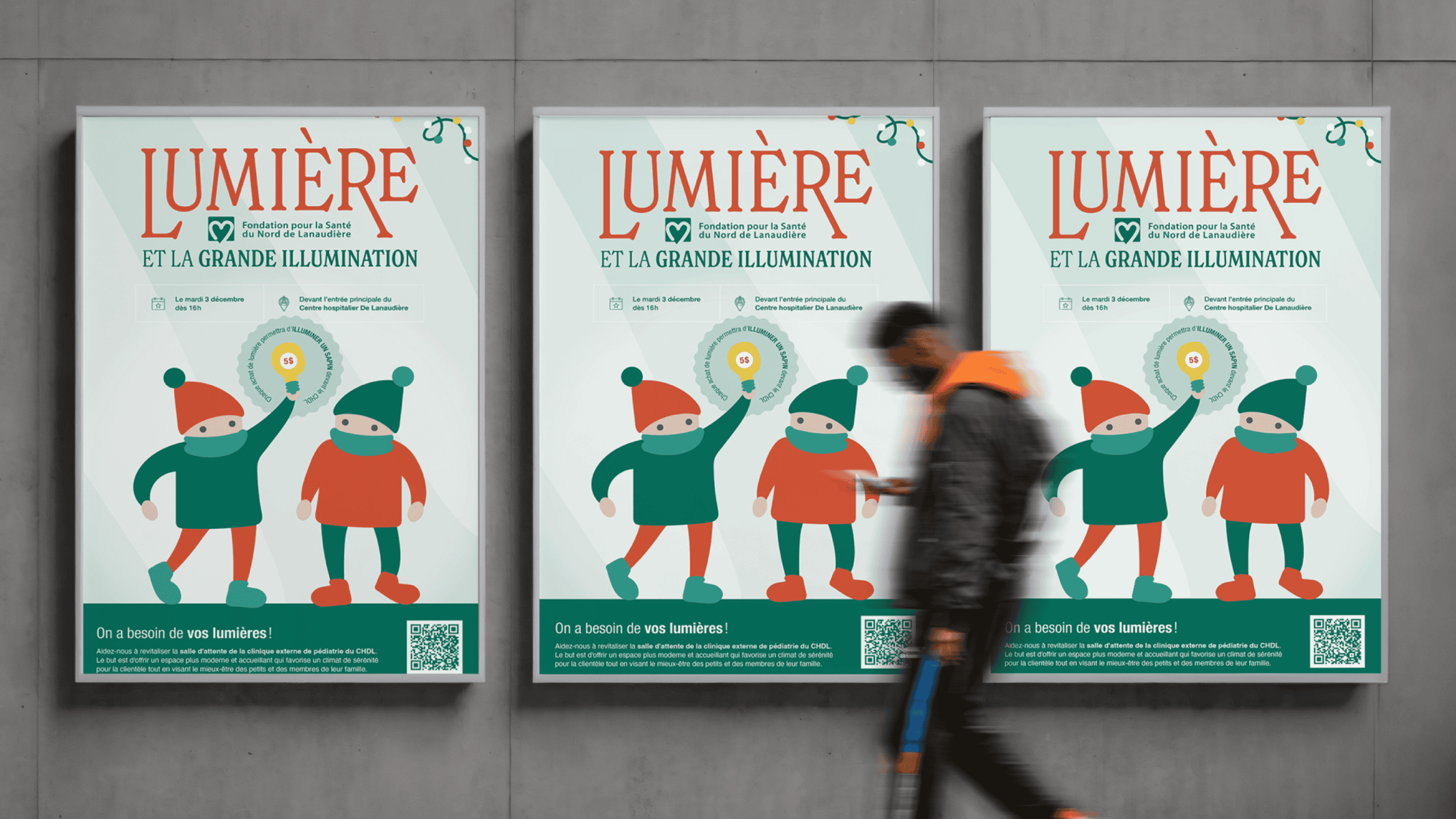 LUMIÈRE n’est pas un simple nom, c’est une invitation à briller ensemble. Inspiré par l’essence même des fêtes, nous avons utilisé ce mot court et évocateur pour symboliser la chaleur, l’espoir et la magie du partage. À travers cette campagne, chaque don allume une réelle lumière sur un grand sapin collectif situé devant le Centre hospitalier de Lanaudière, transformant chaque geste individuel en un symbole visible de solidarité et de joie.